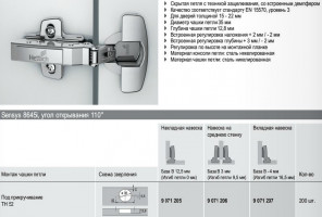 907120602 Петля Sensys 8645i TH 52 угол откр. 110гр. смеж.