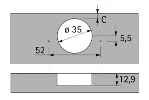 9071314 ПЕТЛЯ SENSYS 8675, УГОЛ 110ГР, ЧАШКА TH52D35, НА СРЕДНЮЮ СТЕНКУ(B3) (беспружинная)