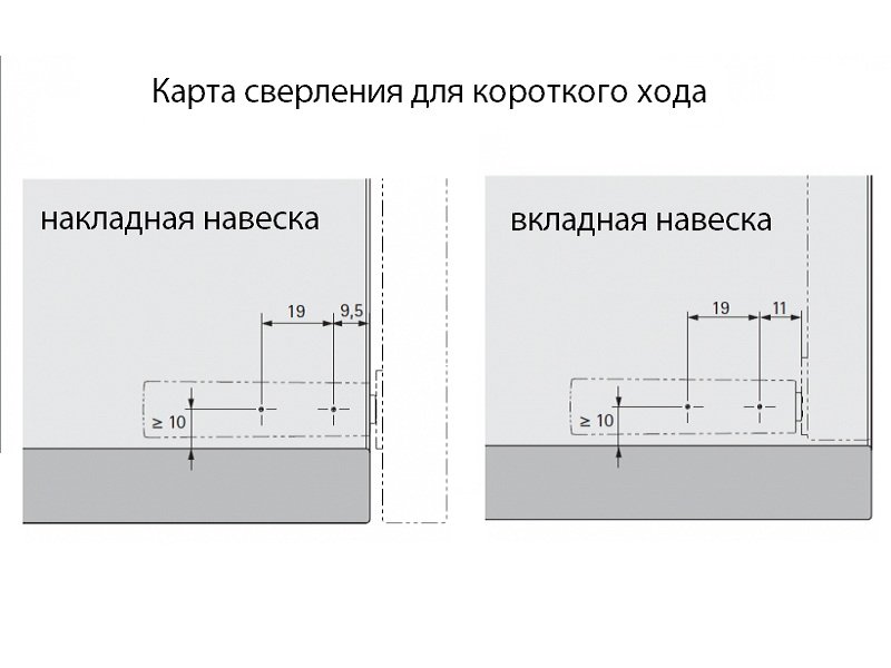 Для накладной, вкладной навески двери и навески на среднюю стенку