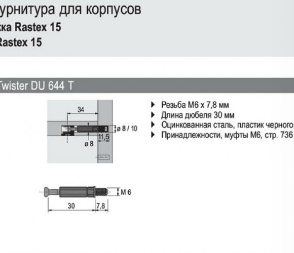 904786400 DU 644 Twister, дюбель под муфту размер 30мм, М6