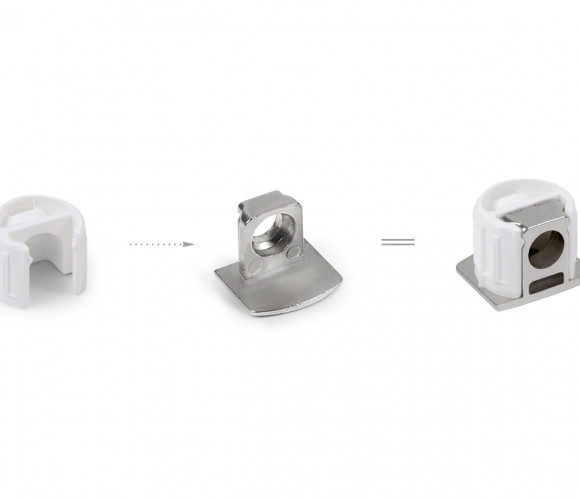 Полкодержатель предназначен для монтажа полок толщиной от 16 мм в мебельные модули любого стиля и направления. Металлический фланец полностью скрывает пластиковые элементы полкодержателя, оставляя на виду лишь лаконичную часть детали.