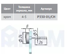 Крепление зеркала 4-5 мм. к стене D24, хром P330-01/CH
