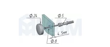 Примечание: диаметр сверления отверстия в зеркале 8 мм