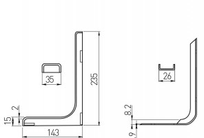 Полкодержатель, инокс, сталь, прямоугольный SETE SH-021-06