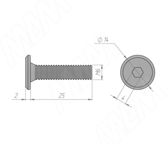 Винт М6х25 с плоской головкой под шестигранник HXS M6x25 FL