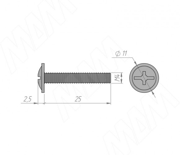 Винт с полукруглой головкой под крест, M4 X 25, HS M4X25 MP