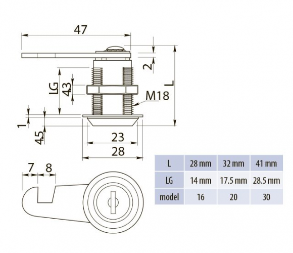 Замок мебельный №103 почтовый - компактное устройство, используемое для запирания почтовых или мебельных ящиков. Для установки замка необходимо в ящике просверлить отверстие соответствующего диаметра.