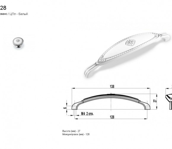 Ручка - скоба FS 138128 серебро прованс/белый (ТЗ)