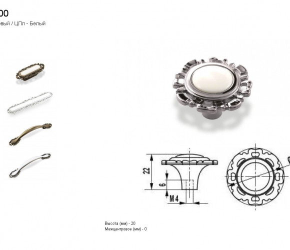 Ручка - грибок FB 033000 Хром глянец/белый (ТЗ)