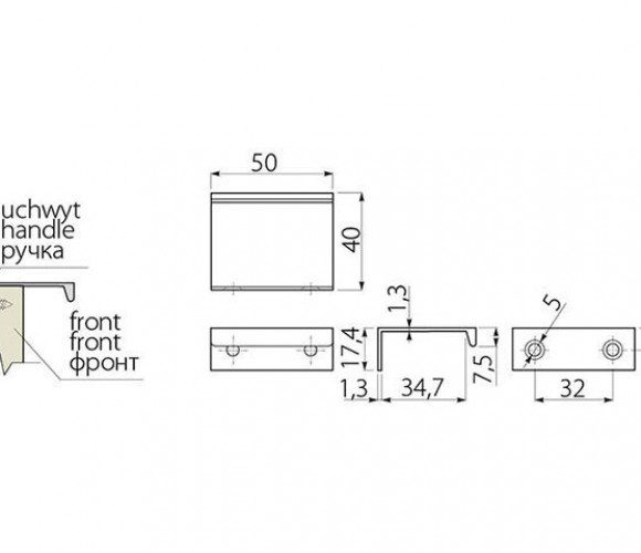 Ручка алюминиевая 32мм/50мм, UA-HEXI-01, хром