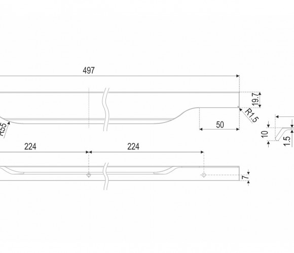 TERA подойдёт как для узких бутылочниц и корзин-карго, так и ящиков формата макси. Торцевую ручку, независимо от размера, можно устанавливать не только чётко в размер фасада, но и как широкий язычок. Ручки в виде язычков прекрасно выполняют свою функциональную и эстетическую роль на более широких фасадах.