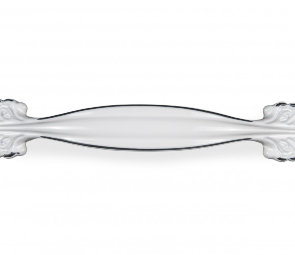 Нежная, словно хлопок, очень декоративная ручка RS472 станет прекрасным дополнением к мебели в стилях классика, неоклассика и прованс. Аккуратный дизайн ручки в белой эмали, дополненной объёмным серебряным кантом по контуру, станет деликатным дополнением к фасадам светлых оттенков древесной структуры, глянцевым фасадам или фрезерованным с патиной.