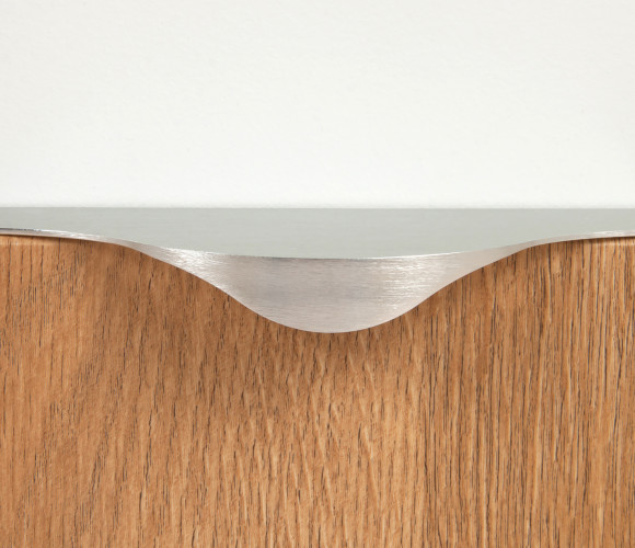 Ручку можно установить двумя способами — «в размер» фасада или по центру как большой «язычок» — оба варианта допустимы с точки зрения дизайна и эргономики.