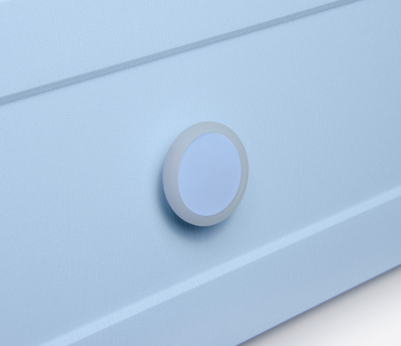 LOLLIPOP RC600 — детская ручка-кнопка из прочной и безопасной для ребёнка конструкции: модель имеет основу для крепления из цинк-алюминия, на которую надевается мягкая насадка из пищевого силикона. Металлическая резьба основы не деформируется при сильной затяжке, что гарантирует прочное и устойчивое соединение ручки с поверхностью фасада. Изделие в виде круга обрамлено полупрозрачными вставками, обеспечивая надёжный эргономичный хват даже детскими пальчиками.