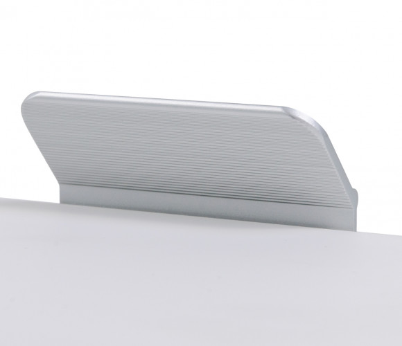 KANT RT013 можно устанавливать не только вертикально, но и горизонтально — для завершённого образа мебельного гарнитура. Модель закрепляется на верхний торец фасада, саморезы (приобретаются отдельно) вкручиваются в отверстия с фаской с задней стороны фасада.