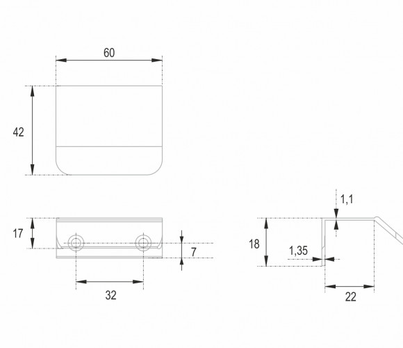 KANT RT013 — геометричная торцевая ручка из алюминия, с трубкообразным выступом и рифлением в зоне захвата для эргономичного использования ручки без соскальзывания. Устанавливается наложением на фасад толщиной от 16 мм.