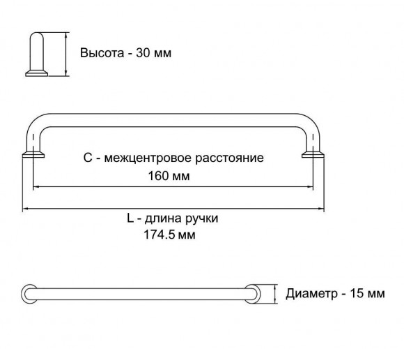 Ручка NORD L-160, золото - гламурный образец лицевой фурнитуры, изящная ручка-скоба для классического интерьера.