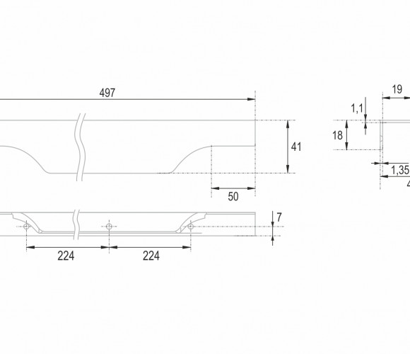 WING RT114 допускает размещение двумя способами — «в размер» фасада (актуально для размеров 500-900 мм) и по центру широких фасадов, как большой «язычок» (для размеров 150 мм, 200-400 мм, 450 мм).