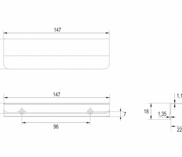 KANT RT013 — геометричная торцевая ручка из алюминия, с трубкообразным выступом и рифлением в зоне захвата для эргономичного использования ручки без соскальзывания. Устанавливается наложением на фасад толщиной от 16 мм.