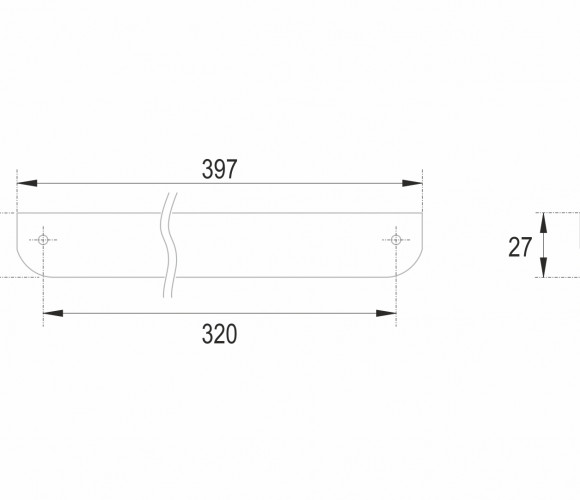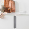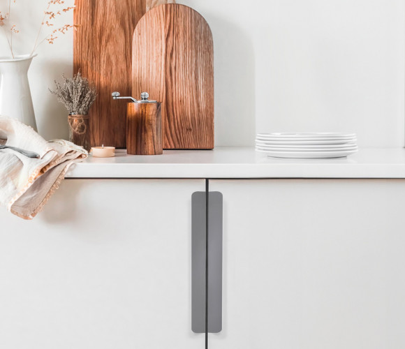 Форма модели позволяет расположить её в край или по центру фасада, креплением горизонтально, а также вертикально у левого и правого торца фасада. Конструкция ручки с острыми краями плотно прижимается к поверхности фасада, создавая эффект естественного продолжения.