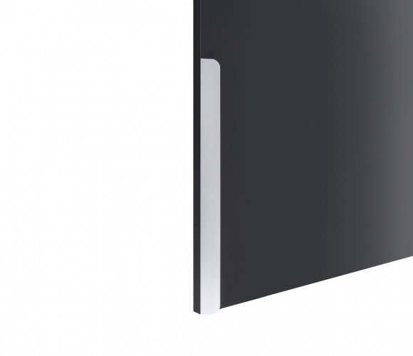 Форма модели позволяет расположить её в край или по центру фасада, креплением горизонтально, а также вертикально у левого и правого торца фасада. Конструкция ручки с острыми краями плотно прижимается к поверхности фасада, создавая эффект естественного продолжения.