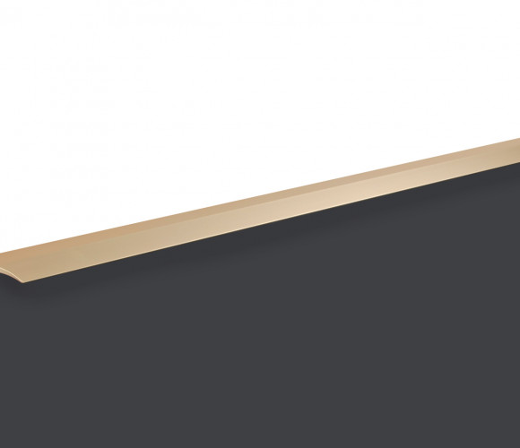 WING RT114 — торцевая ручка с изгибом из алюминия, устанавливается наложением на фасады толщиной 18,8 мм (в цветах BL,GR,SC,SG) и 18,5 мм (в цвете W).