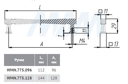 Ручка-скоба 128мм серебро состаренное WMN.775.128.00E8