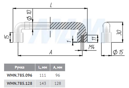 Ручка-скоба 128мм черное железо WMN.785.128.00Т2