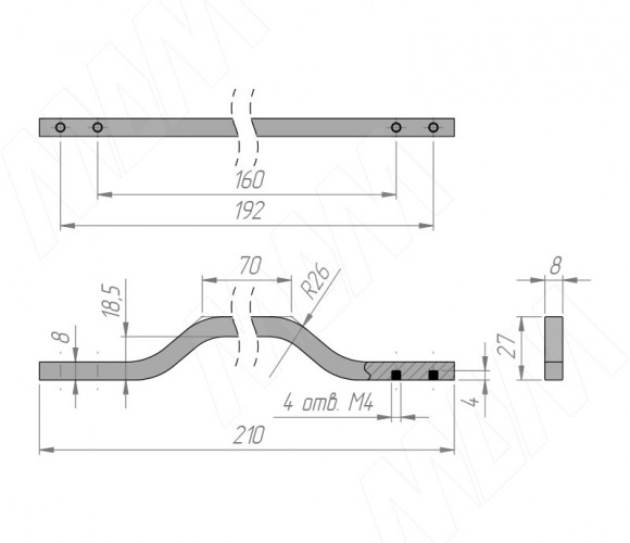 Ручка-скоба 160/192мм хром матовый BH.62.160-192.SC