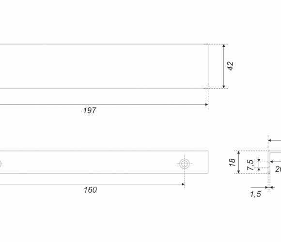 METRICA RT112 — торцевая ручка из алюминия, с геометричным выступом и рифлением в зоне захвата для эргономичного использования. Устанавливается наложением, подходит для фасадов толщиной от 16 мм до 20 мм.