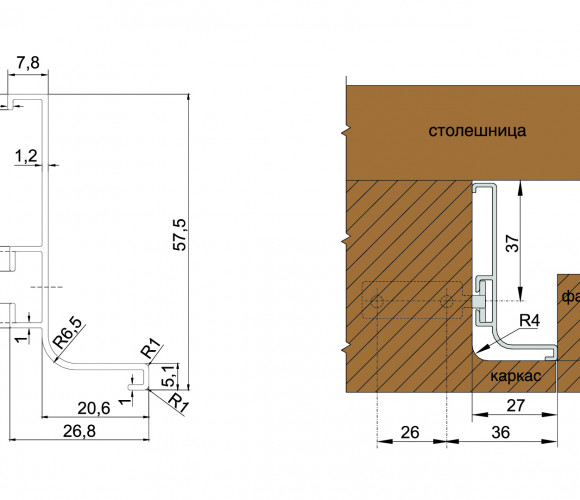 Края ручки-профиля закрываются заглушками RZ051.01. Заглушки выполнены из цинк-алюминия в тон профиля. Они приобретаются отдельно в нужном количестве и цвете под заданный мебельный проект.