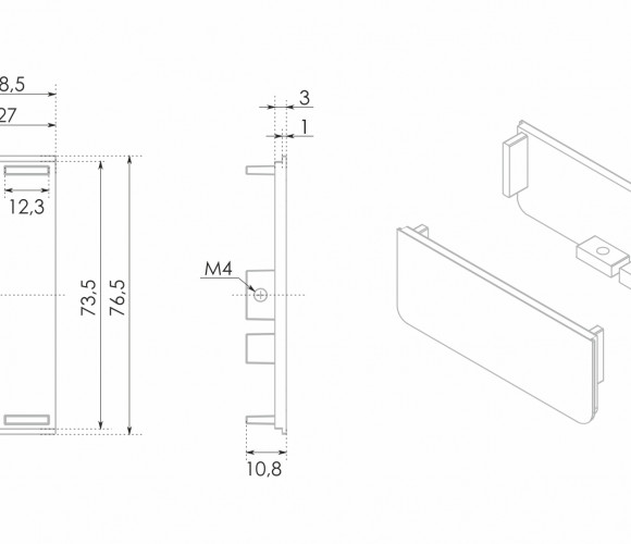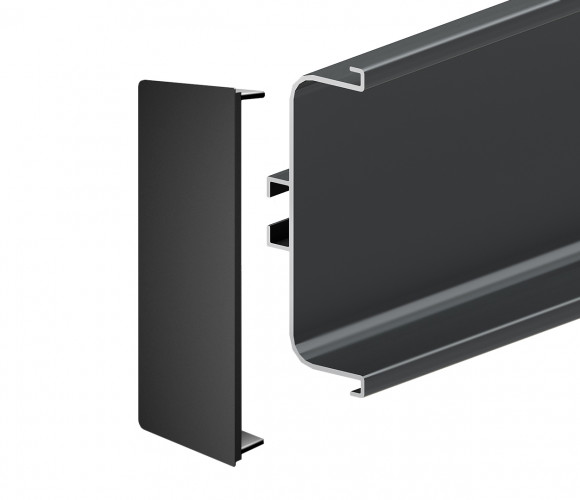 RZ050.04 - закрытые заглушки из цинк-алюминия для стильного и эстетичного оформления среза горизонтального профиля GOLA BALANCE по краям гарнитура, на стыке с посудомоечной машиной, духовым шкафом или мебельным модулем.