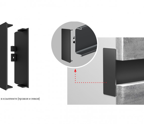 В комплект входит: левая и правая заглушки, 2 винта для крепления заглушки к профилю, ключ-шестигранник для фиксации винтов.