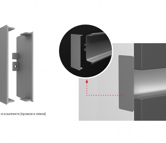 В комплект входит: левая и правая заглушки, 2 винта для крепления заглушки к профилю, ключ-шестигранник для фиксации винтов.