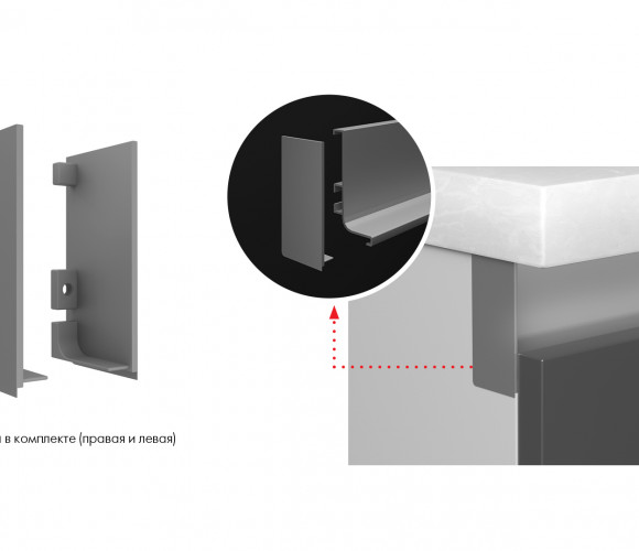 В комплект входит: левая и правая заглушки, 2 винта для крепления заглушки к профилю, ключ-шестигранник для фиксации винтов.