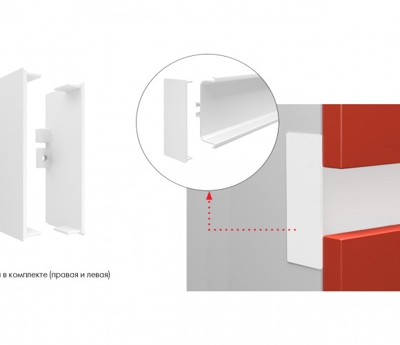 В комплект входит: левая и правая заглушки, 2 винта для крепления заглушки к профилю, ключ-шестигранник для фиксации винтов.