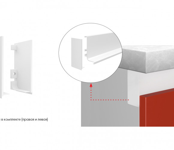 В комплект входит: левая и правая заглушки, 2 винта для крепления заглушки к профилю, ключ-шестигранник для фиксации винтов.