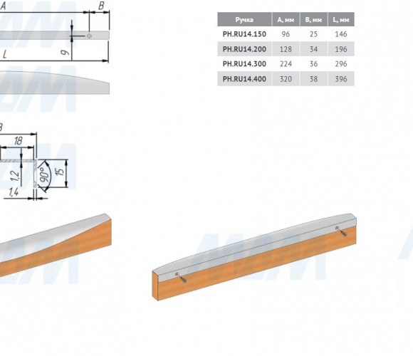 Профиль-ручка крепление саморезами белый матовый 196мм (краска) PH.RU14.200.WHT