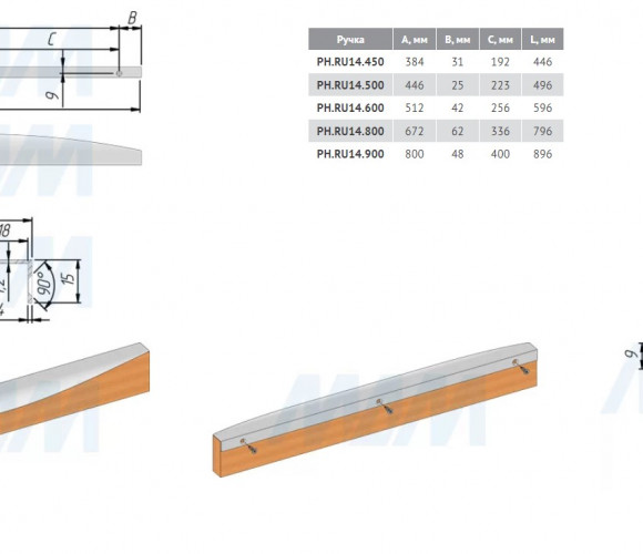 Профиль-ручка крепление саморезами белый матовый 446мм (краска) PH.RU14.450.WHT