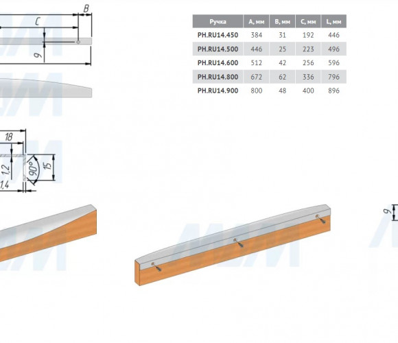 Профиль-ручка крепление саморезами черный матовый 596мм (анод) PH.RU14.600.BL