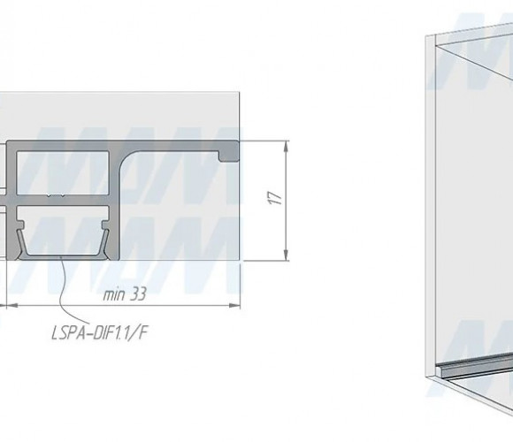 Профиль-ручка GOLIGHT для верхн базы, под светод. ленту,черный матовый L-3000мм. GL3.131.729.3000.7W, (без рассеивателя)