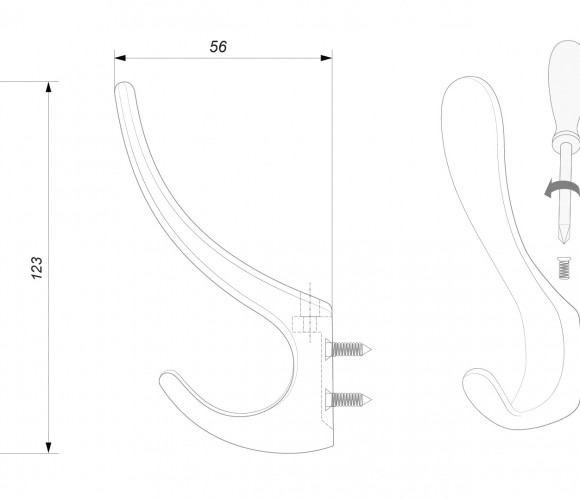 Монтаж крючка достаточно прост и обеспечивает плотную установку, исключая соскальзывание в любой ситуации: крепление планки к мебели производится с помощью саморезов, а затем на неё надевается крючок при помощи винта, без каких-либо следов установки.