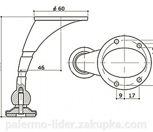 Ножка изогнутая 10 см. хром