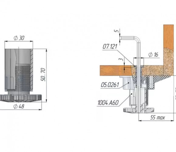 Ножка пластиковая серии 1004, h=60 мм 1004.А60+05.0261