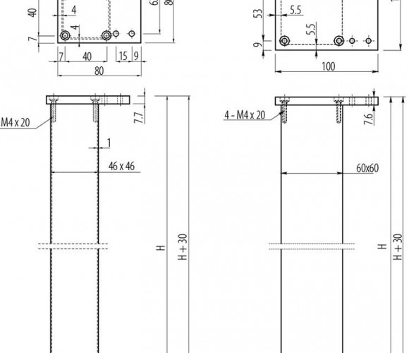 Опора для стола квадратная 820х46х46мм регулир. алюминиевая NM-46R820-05