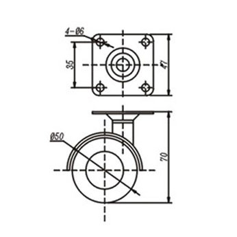 Опора колесная D50 усиленная, на площадке, хром TZP-50
