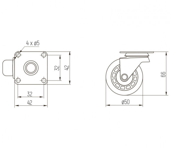 Опора колесная с фланцем, D50мм без тормоза, прозрачное CS-50