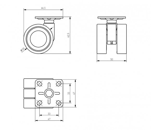 Опора колесная с фланцем, CIRCO, D50мм без тормоза, серое KM-CIRCO-50мм-BH-19