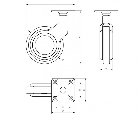 Опора колесная с фланцем, GIRA, D60мм без тормоза, черное/хром KM-GIRA-60мм-BH-20