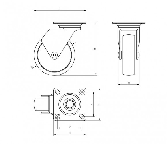 Опора колесная с фланцем, CALIBRO, D50мм без тормоза, черное KM-CALIBRO-50мм-BH-20